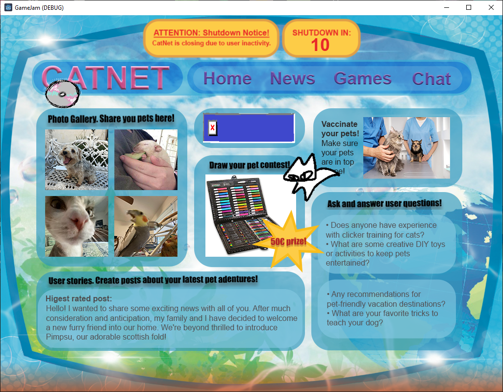 aw, thank you. :) but yeah, sorry, there's nothing else besides that. we didn't manage to implement anything besides the login, page 1, and page 2.